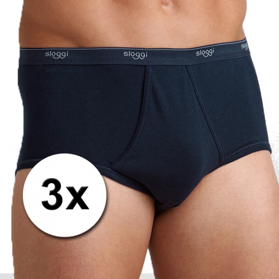 Sloggi basic maxi herenslip navy blauw, voordeelverpakking 3 stuks. Comfortabele Sloggi basic maxi herenslip Heren met een perfecte pasvorm. Materiaal: 95% katoen/5% elastiek. Sloggi herenslips zijn leverbaar in diverse kleuren.