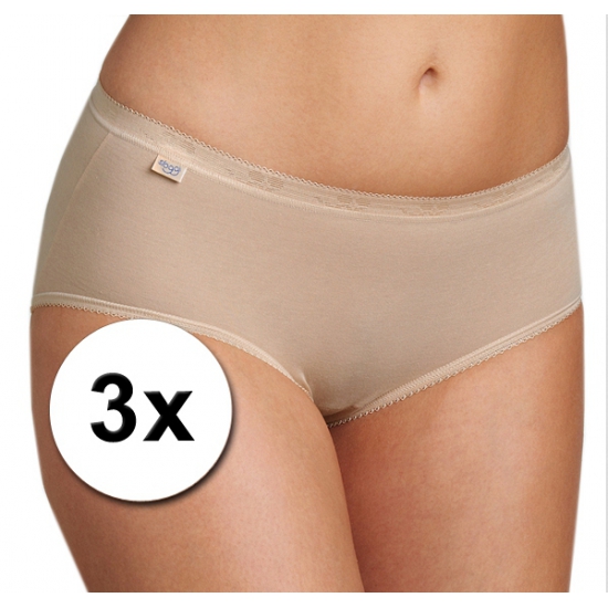 Sloggi basic midi dames slip huidskleur, 3 stuks. Comfortabel basic midi damesslip, zacht klassiek stretch dames ondergoed. Sloggi damesondergoed heeft zeer veel modellen. Materiaal: 95% katoen/5% Lycra.
