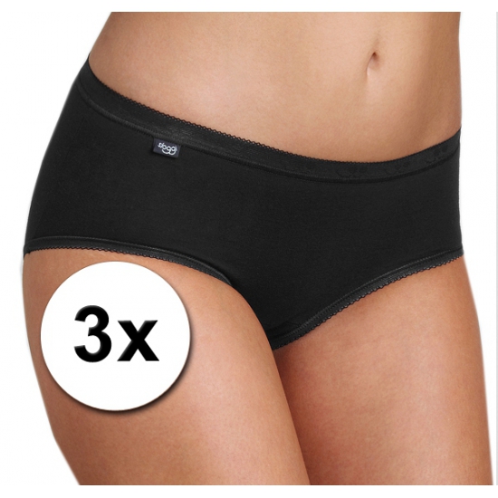 Sloggi basic midi dames slip zwart, 3 stuks. Comfortabel basic midi damesslip, zacht klassiek stretch dames ondergoed. Sloggi damesondergoed heeft zeer veel modellen. Materiaal: 95% katoen/5% Lycra.