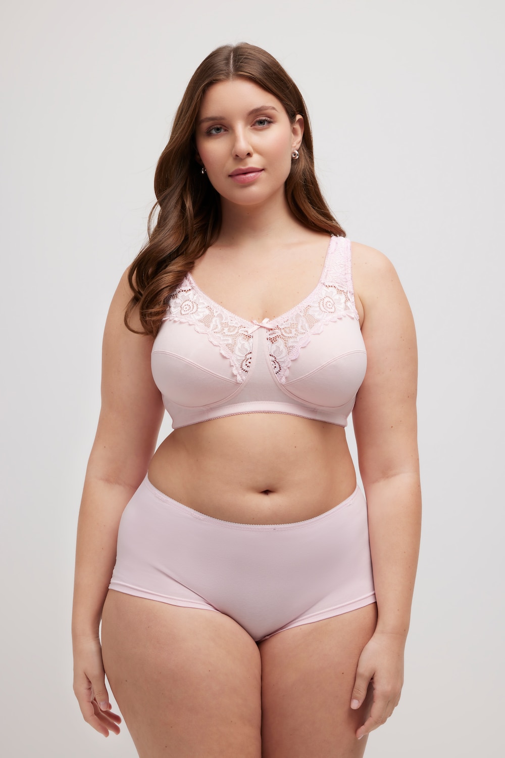 De comfortbeha Kelly met chic kant en klein sierstrikje tussen de cups geeft goede steun bij grote maten. De extra brede, gepolsterde, in lengte verstelbare bandjes en het hogere rugdeel voorkomen het snijden in de huid. Daardoor zit de beha aangenaam en beschermt zo de rug en schouders. De band onder de buste, de ingewerkte inzetten van netstof opzij en onder de bandjes zorgen voor goede steun en passen zich optimaal aan het lichaam aan. Een extra sikkelvormige inzet in de cup ondersteunt en pushed licht de buste.