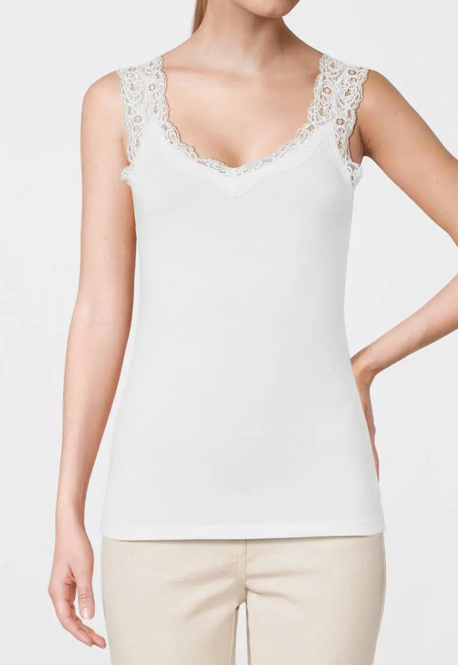 Hemdje met kant – Lace Top – Barbera – Viscose kanten onderhemd – Singlet met brede bandjes – Zwart – Huidskleur – Wit – Lingerie top