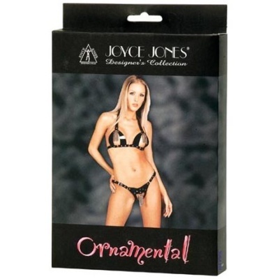 Tweedelige set bestaande uit een verstelbare string met open kruis en een open beha. Afgewerkt met zilver metalen ring en. Deze tweedelige set is vervaardigt uit PVC en metaal. One size.