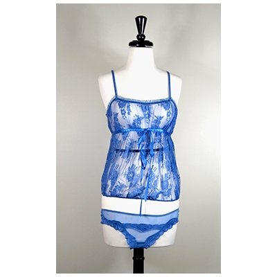 Lace Camisole And Thong Set – Blauw – Maat: XL