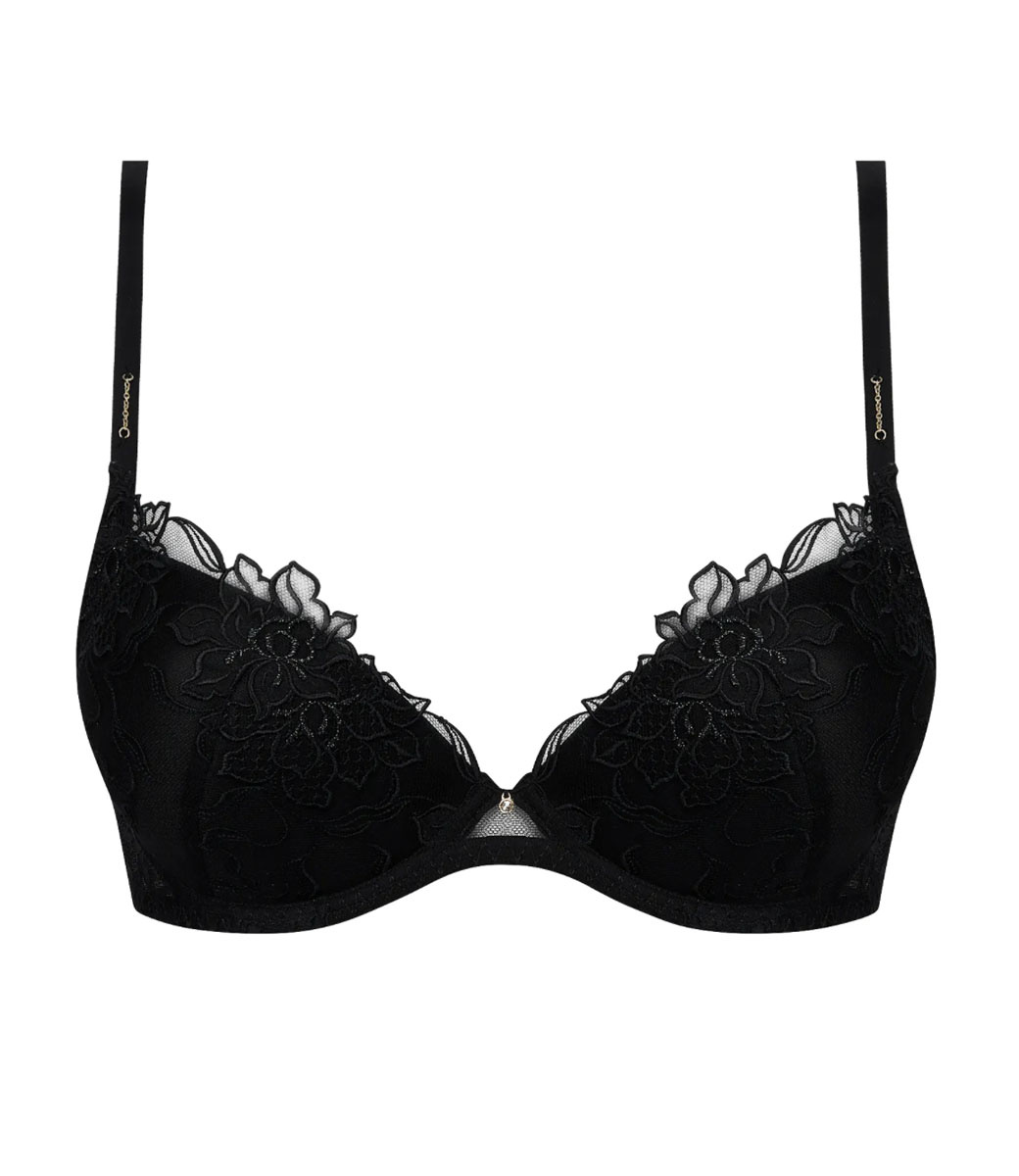 Zoek je 'n zwarte BH? Push-up BH bloem-broderie op tule Frans kant? Shop jouw Lise Charmel lingerie Adorable en Sexy nu online bij Italian Design. Start nu Hier