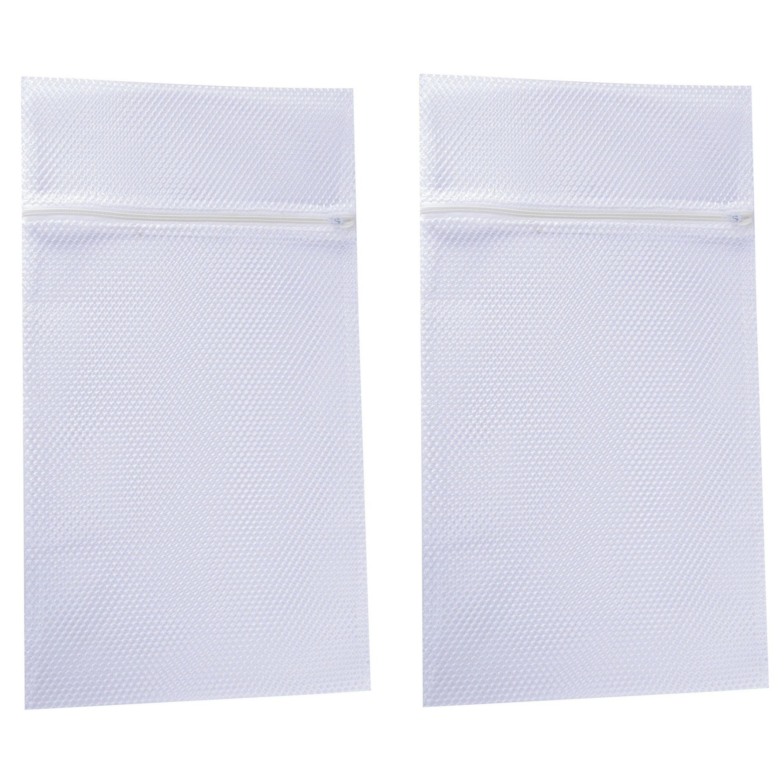 2x Waszak voor delicate kwetsbare wasgoed/kleding voor in de wasmachine. Dit product leent zich uitstekend om kwetsbare kleding, lingerie en bh’s te beschermen tegen beschadigingen door de wasmachine. De opvouwbare waszak kan ook worden gebruikt tegen pluis. Kleur: wit. Formaat: 45 x 25 cm.
