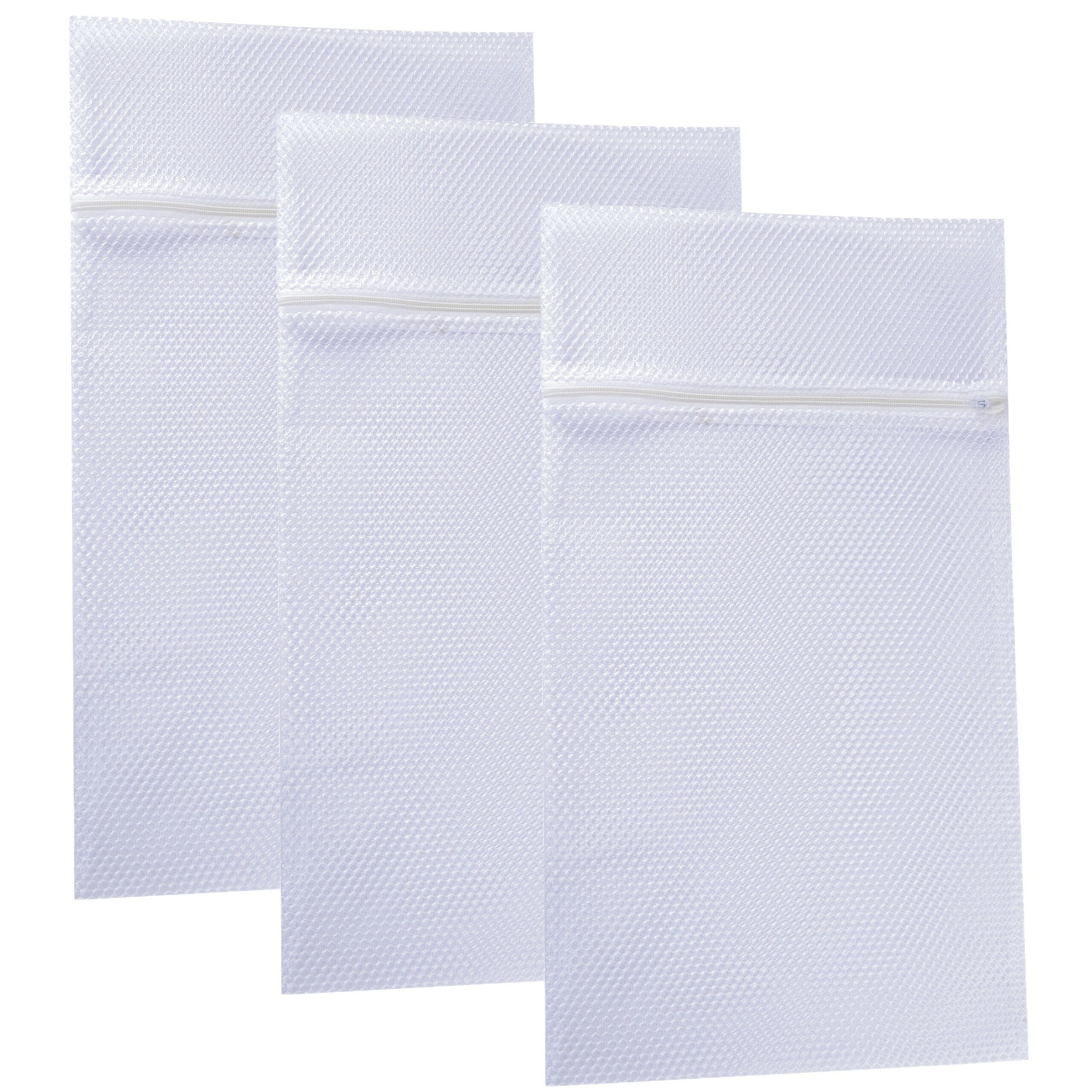 3x Waszak voor delicate kwetsbare wasgoed/kleding voor in de wasmachine. Dit product leent zich uitstekend om kwetsbare kleding, lingerie en bh’s te beschermen tegen beschadigingen door de wasmachine. De opvouwbare waszak kan ook worden gebruikt tegen pluis. Kleur: wit. Formaat: 45 x 25 cm.
