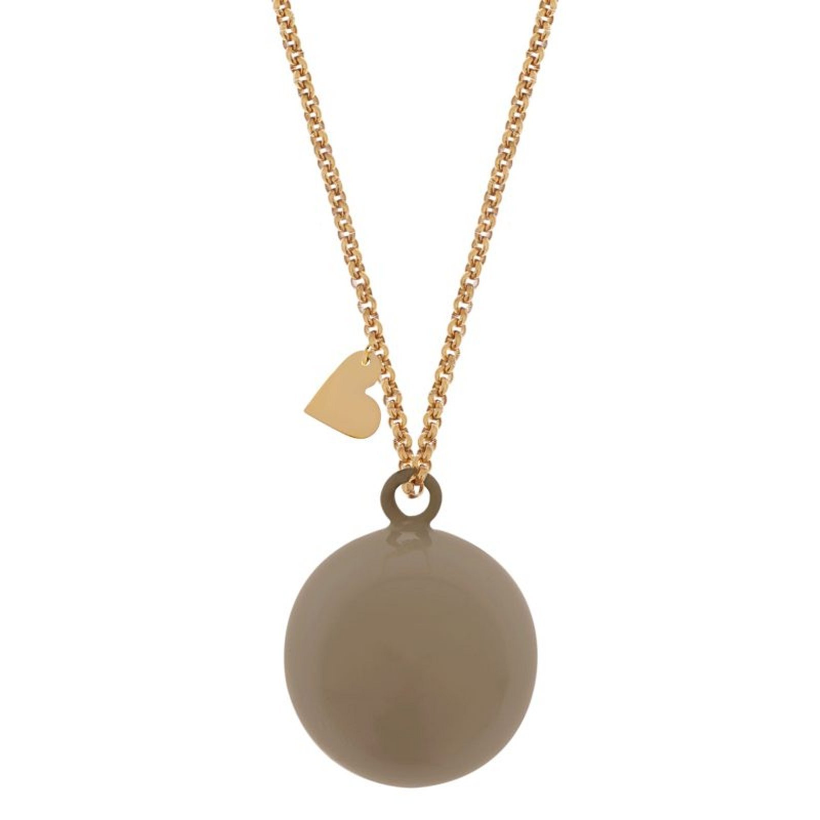 Ballchain Babybel Feline Taupe is een lange Goudkleurige stalen zwangerschapsketting met een gladde bal met een fijn tinkel geluid. Deze bola ketting laat zien dat je zwanger bent en voor de baby in jouw buik is het een rustgevend geluid.