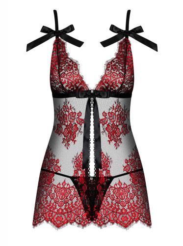 Redessia Kanten Babydoll Met String – Rood/Zwart
