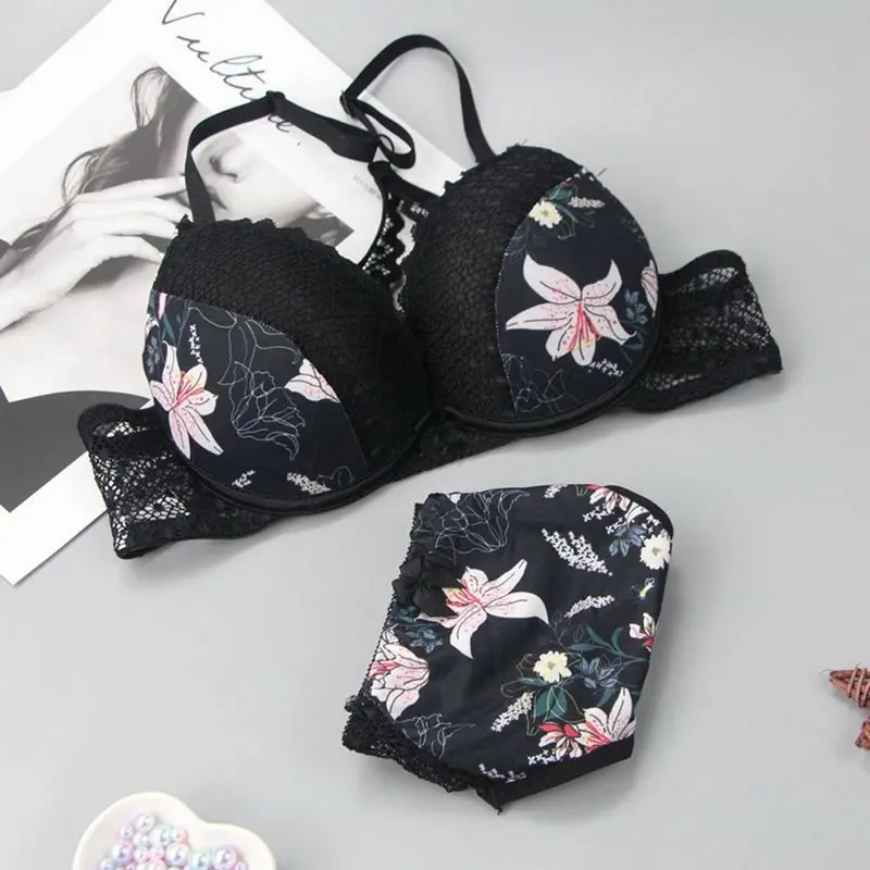 Sexy Lingerie Printed Sujetador Set Transparente Panties and Bra Set Underwear Set Women fashion Underwear Set Female Intimates