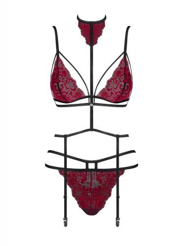 Sugestina 3-delige Jarretelset – Zwart/Rood